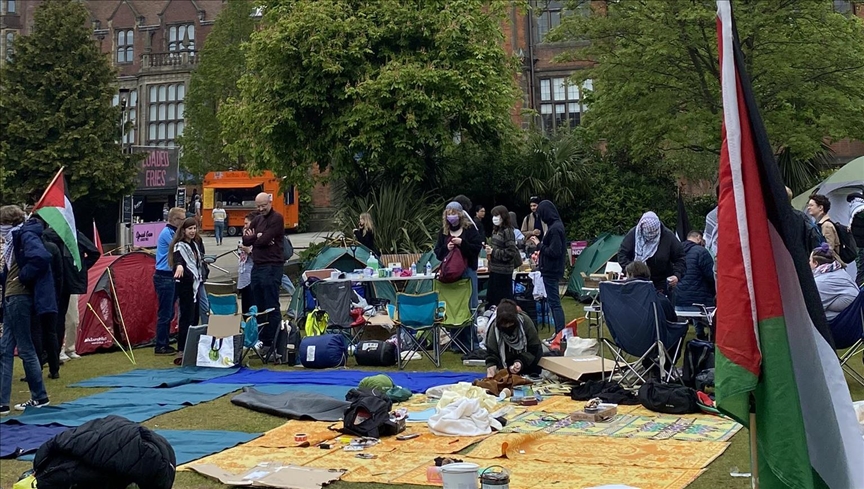 وعبّر طلاب الجامعات البريطانية رفقة بعض الموظفين عن دعمهم لنظرائهم في البلدان الأخرى عبر التجمع في مناطق مفتوحة ونصب الخيم داخل جامعاتهم.