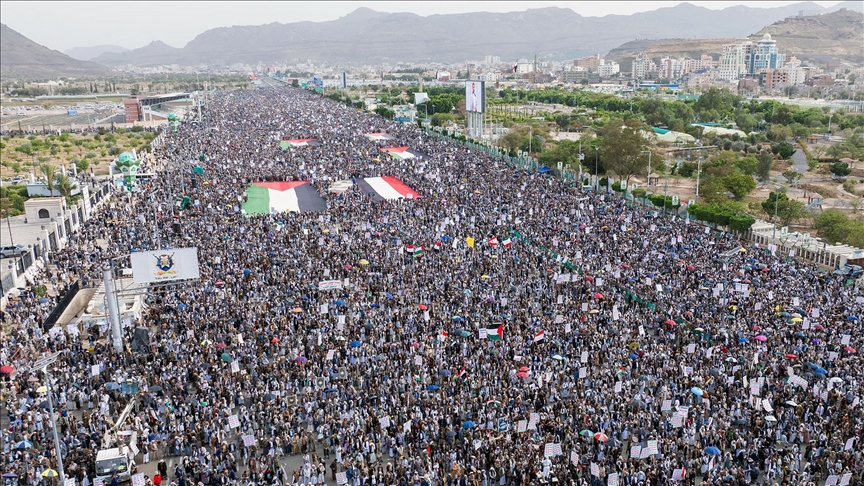 في اليمن، تظاهر عشرات الآلاف في مئات الساحات بمحافظات تسيطر عليها جماعة “الحوثي”، أبرزها العاصمة صنعاء، والحديدة (235 ساحة) وصعدة (36 ساحة)، بحسب ما نقلته قناة “المسيرة” التابعة للجماعة.
