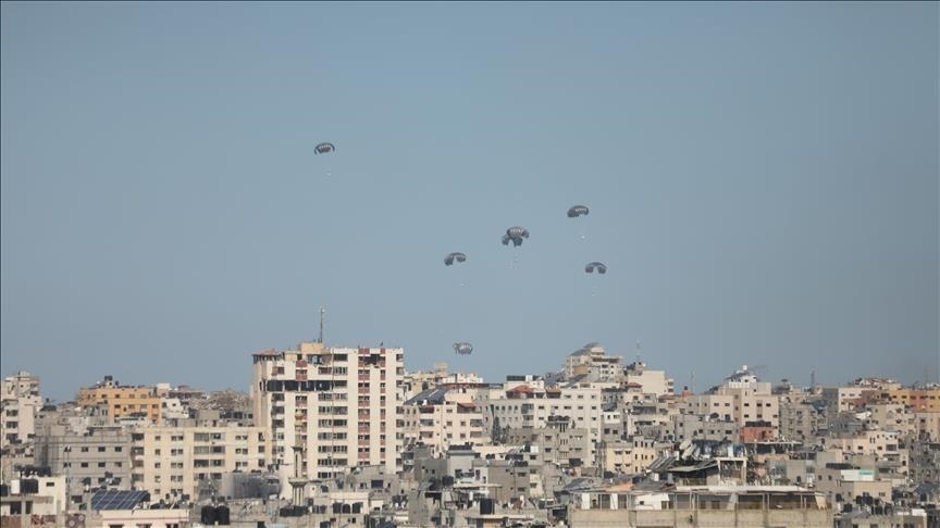 صندوق مساعدات سقط من الجو على مجموعة مواطنين شمالي القطاع بعدما لم تفتح مظلاته، وفق بيان لجهاز الدفاع المدني بغزة