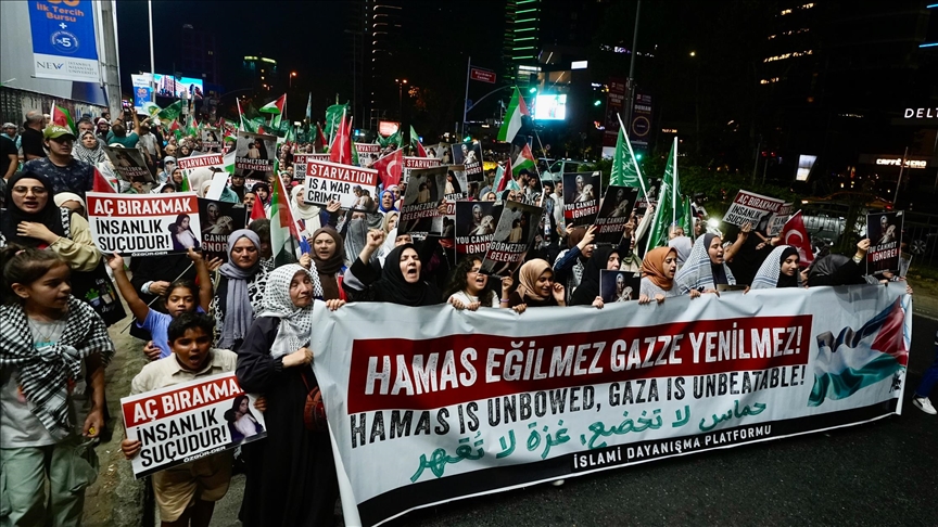 نظمت منصة التضامن الإسلامي في إسطنبول مسيرة احتجاجية ضد الإبادة الجماعية وسياسة التجويع التي تمارسها إسرائيل بحق الفلسطينيين بقطاع غزة.