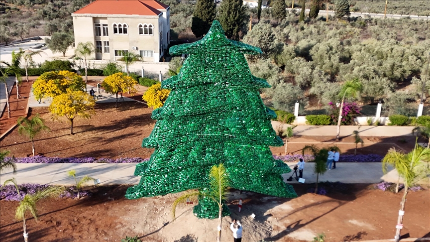 وأوضحت شبطيني: “جمعنا أكثر من 450 ألف قنينة بلاستيكية خضراء لبناء الشجرة، التي يبلغ ارتفاعها 10 أمتار، كرمز لمساحة لبنان 10452 كلم²”.
