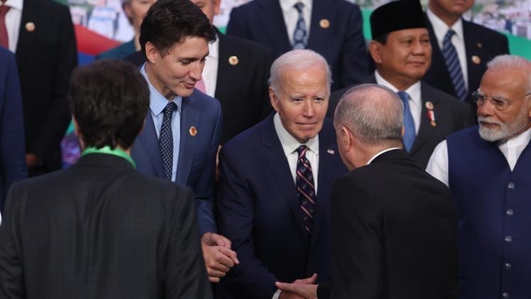 وبعد التقاط الصورة الجماعية تبادل الرئيس التركي الحديث مع نظيره الأمريكي جو بايدن لفترة قصيرة.