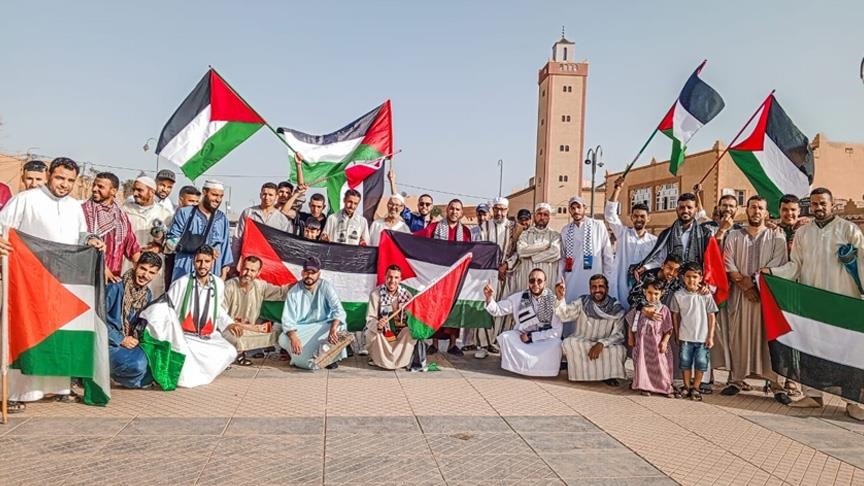 وجاءت الفعاليات التي بدأت الاثنين، استجابة لدعوة من الهيئة المغربية لنصرة قضايا الأمة (غير حكومية) وتنوعت بين رفع الأعلام الفلسطينية والكوفية خلال صلاة العيد، وصولا لمواكب ومسيرات داعمة لصمود الشعب الفلسطيني.