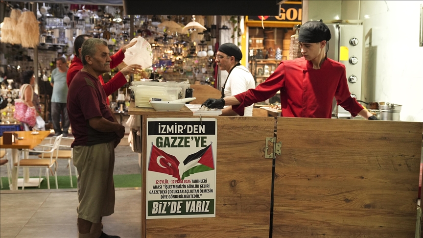 وعلق أصحاب المطعم لافتات جاء فيها “من إزمير إلى غزة، نحن أيضا معكم، سيتم التبرع بأرباح محلنا من 12 سبتمبر/ أيلول إلى 12 أكتوبر/ تشرين الأول، كي لا يموت أطفال غزة بسبب المجاعة”.