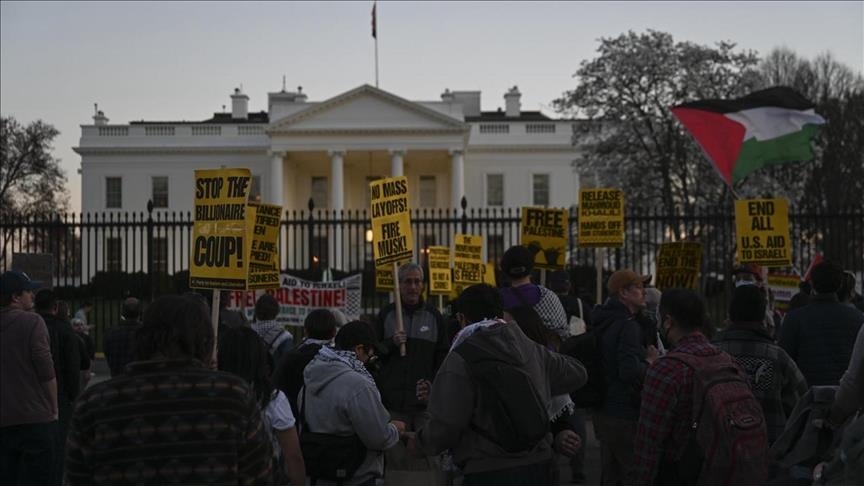 المظاهرة التي جرت مساء الأحد في حديقة لافاييت المقابلة للبيت الأبيض، شهدت احتجاجا ضد إسرائيل والولايات المتحدة الأمريكية التي تدعمها.