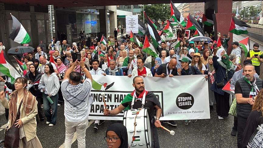 وردد المشاركون شعارات من قبيل “الحرية لفلسطين، نتنياهو قاتل”، قبل أن يتوجهوا في مسيرة إلى مبنى وزارة الخارجية السويدية.