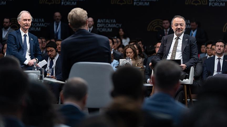 منتدى أنطاليا الدبلوماسي المنعقد جنوبي تركيا، شهد عقد جلسة حملت عنوان “سوريا.. بلد يتصالح ويُعاد بناؤه”، وأدارها رئيس منتدى الشرق وضاح خنفر، وشارك فيها كل من نائب وزير الخارجية التركي نوح يلماز، ونائب المدير التنفيذي لبرنامج الأغذية العالمي كارل سكاو، والمبعوث الأممي الخاص إلى سوريا غير بيدرسون، ورئيس شبكة حلول التنمية المستدامة التابعة للأمم المتحدة البروفيسور جيفري ساكس، فيما شارك رئيس مركز عمران للدراسات الاستراتيجية عمار قحف معقّبًا.