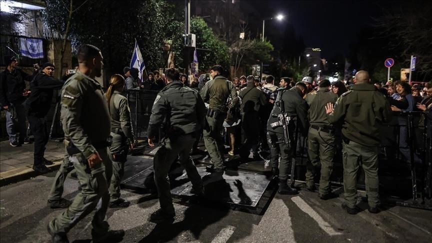 وأظهرت مقاطع فيديو على مواقع التواصل الاجتماعي، عناصر من الشرطة وهم يخلون بالقوة متظاهرين أثناء إغلاقهم شارع قريب من مكتب رئيس الوزراء بنيامين نتنياهو، القريب من مبنى الكنيست.