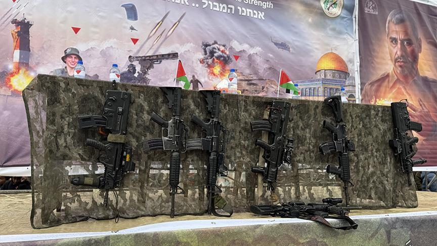 واستعرضت القسام أيضا أسلحة إسرائيلية اغتنمتها خلال عملية “طوفان الأقصى” في 7 أكتوبر 2023، حيث جعلت فوهاتها للأسفل، وكأنها رسالة لإسرائيل بتنكيس أسلحتهم.
