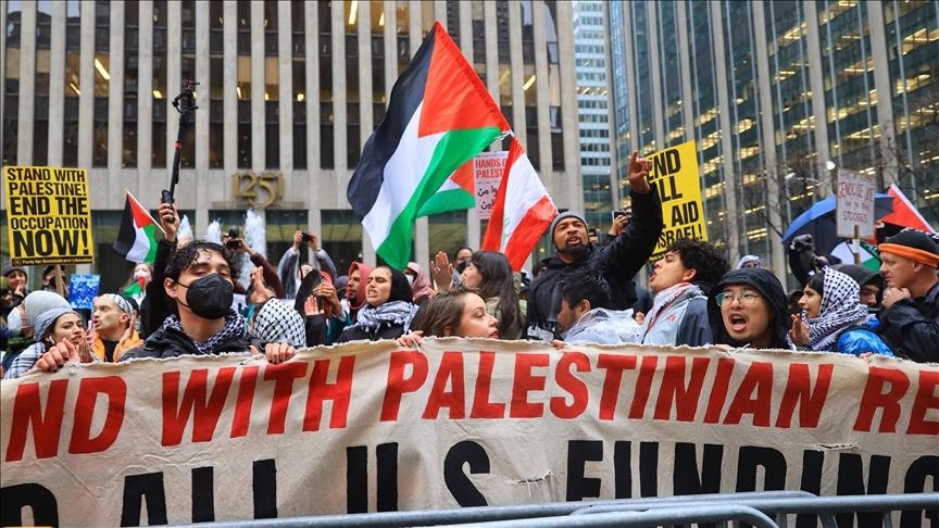 شاركها فيسبوك تويتر لينكدإن بينتيريست تيلقرام البريد الإلكتروني طلاب متظاهرون قاموا بتقييد أنفسهم بسلاسل على بوابة جامعة كولومبيا، تعبيرًا عن احتجاجهم على اعتقال زملائهم الناشطين.. المصدر: وكالات