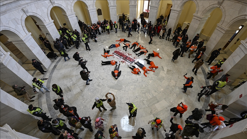 واشنطن.. مظاهرة داخل الكونغرس للمطالبة بوقف إطلاق النار في غزة