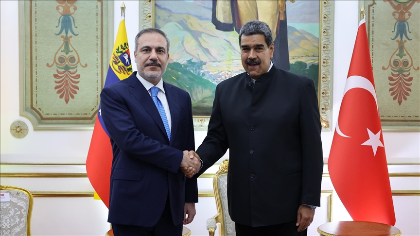 شاركها فيسبوك تويتر لينكدإن بينتيريست تيلقرام البريد الإلكتروني الوزير هاكان فيدان وصل الجمعة إلى فنزويلا في زيارة رسمية التقى خلالها بنظيره إيفان جيل والرئيس مادورو.. المصدر: وكالات