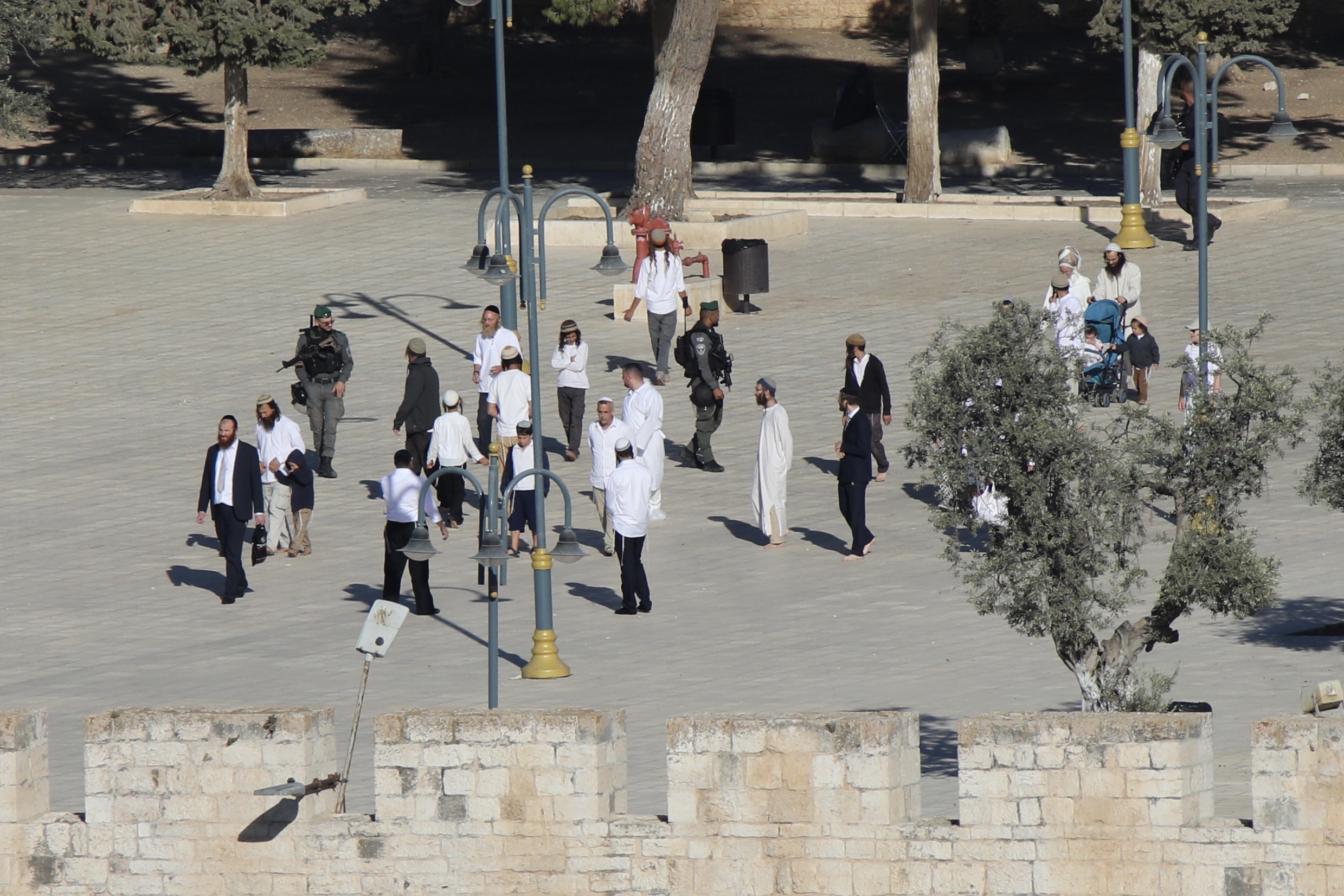 وأوضحت أن هذه الطقوس تضمنت “رقصات استفزازية أمام قبة الصخرة المشرفة، وحمل القرابين النباتية (سعف النخيل وأغصان الصفصاف وثمار الأترج) عند بابي الملك فيصل والمجلس”.