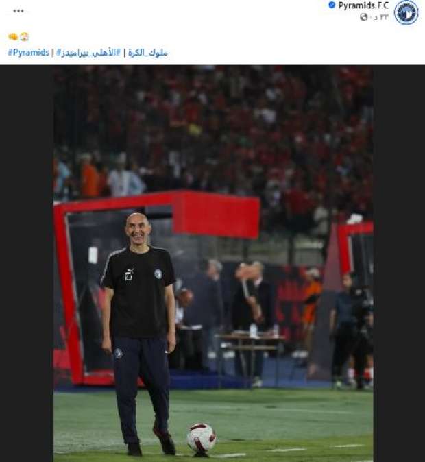 وقام حساب بيراميدز بنشر صورة مدرب الفريق الذي قاده للفوز على الأهلي بهدفين، مع وضع تعليقات تشير إلى قوة المدرب، بعد لحظات من إعلان الأهلي رحيل ريبيرو.