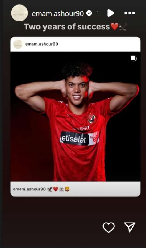 ونشر إمام عاشور ستوري عبر حسابه الرسمي على موقع تبادل الصور «انستجرام» قال فيها: «عامين من النجاح».