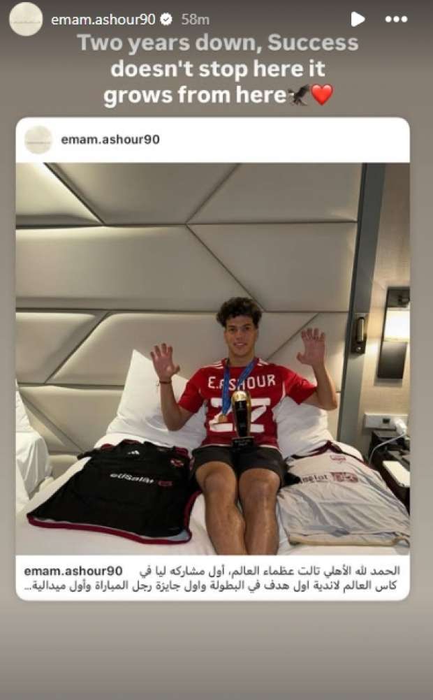 وأضاف عاشور في ستوري آخر: «عامين هنا، النجاح لا يتوقف بل ينمو هنا».