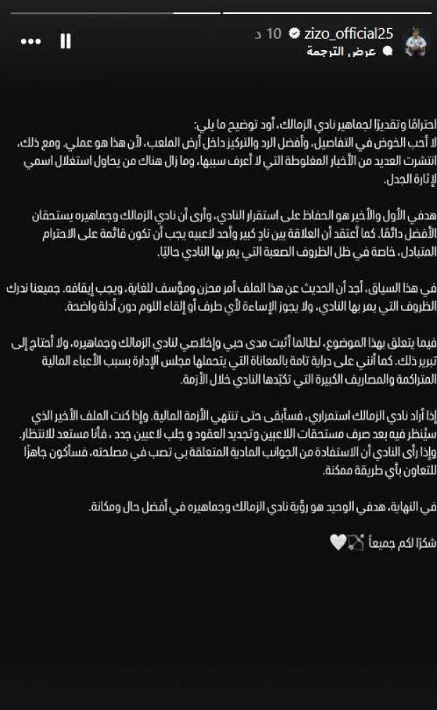 بيان أحمد سيد زيزو لاعب نادي الزمالك