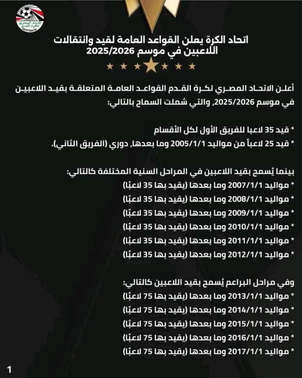 وطبقًا للمنشور فإنه لن يتم اللاعب المغربي تحت السن، إلا أن مصدر داخل اتحاد الكرة أكد أن القرار تم تعديله بوضع فريق 2005 ضمن المراحل السنية وقيد الأجانب ضمنه.