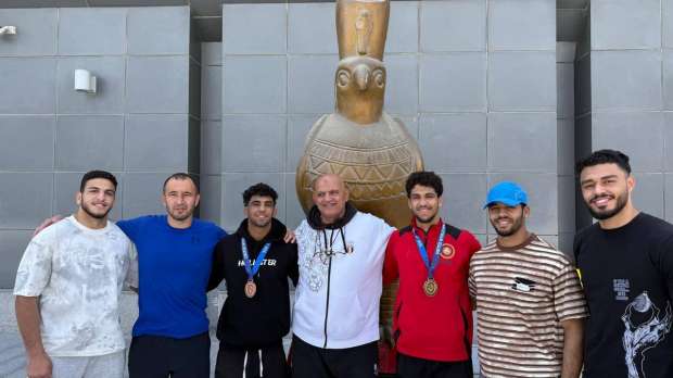 استقبال أعضاء وزارة الشباب والرياضة بأبطال منتخب مصر للمصارعة