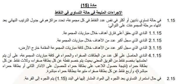 – في حال استمرار التساوي بعد اللجوء إلى المواد المشار إليها في البند (1.15)، يتم اللجوء إلى القرعة.