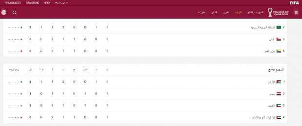 بهذه النتيجة يتصدر المنتخب الأردني مجموعة مصر برصيد 3 نقاط وفي المركز الثاني المنتخب المصري برصيد نقطة وفي المركز الثالث الكويت بنفس رصيد مصر وفي المركز الأخير منتخب الإمارات.