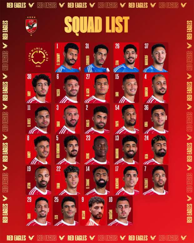وضمت القائمة التي أعلنها النادي الأهلي، عبر حساباته الرسمية على منصات التواصل الاجتماعي، 28 لاعبا، سيدافعون عن ألوان المارد الأحمر في بطولة العالم للأندية، التي تقام للمرة الأولى بمشاركة 32 ناديً.