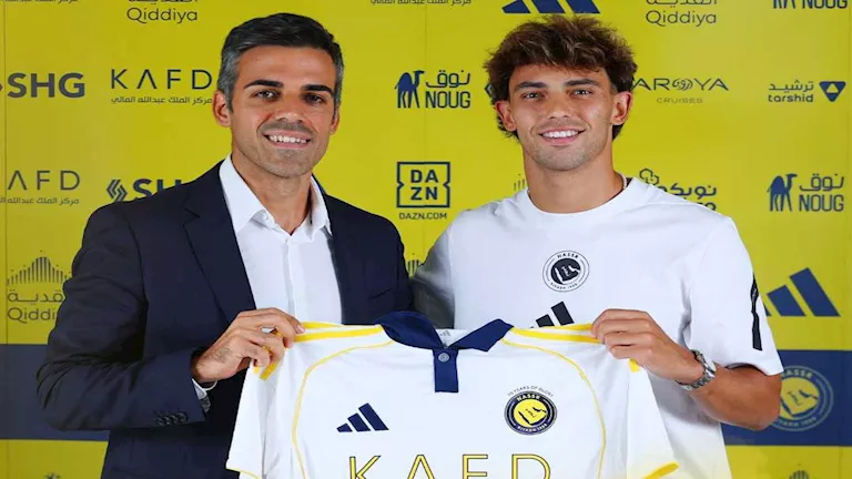 أعلنت إدارة شركة نادي النصر إنهائها إجراءات توقيع العقد مع النجم البرتغالي جواو فيليكس قادمًا من تشيلسي الإنجليزي.