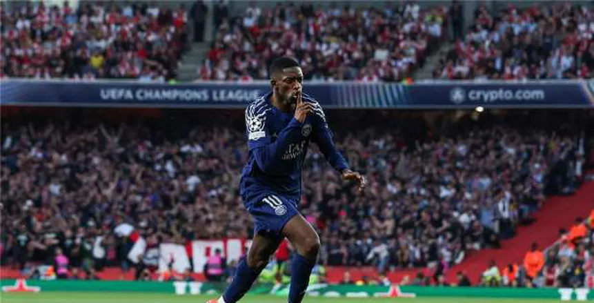 عثمان ديمبيلي لحظة احتفاله بهدفه أمام أرسنال