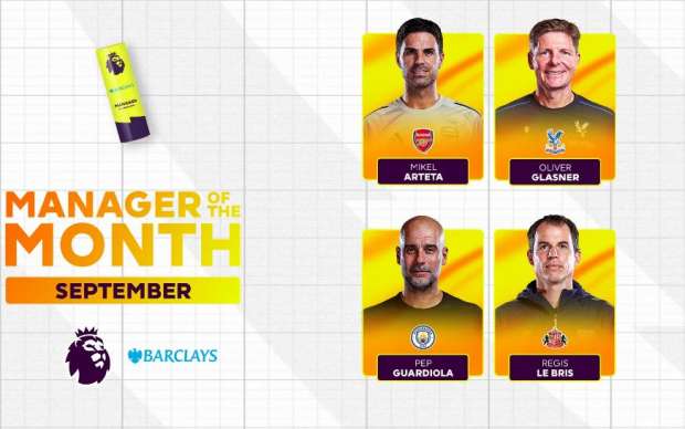 أعلنت رابطة الدوري الإنجليزي الممتاز بدء التصويت لجائزة أفضل مدرب لشهر سبتمبر 2025 من باركليز، وقد تم ترشيح بيب جورديولا (مانشستر سيتي)، ميكل أرتيتا (أرسنال)، أوليفر جلاسنر (كريستال بالاس)، ريجيس لو بري (سندرلاند) للفوز بالجائزة، لما قدّموه من اداء قوي خلال الشهر.