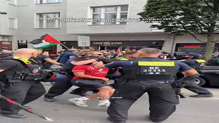 وتداول رواد مواقع التواصل الاجتماعي، مقطع فيديو لرجال الشرطة الألمانية، هو يعتدون بالضرب بشكل وحشي على مجموعة من الأشخاص في شوارع برلين، لإظهار تعاطفهم ودعمهم للشعب الفلسطيني.