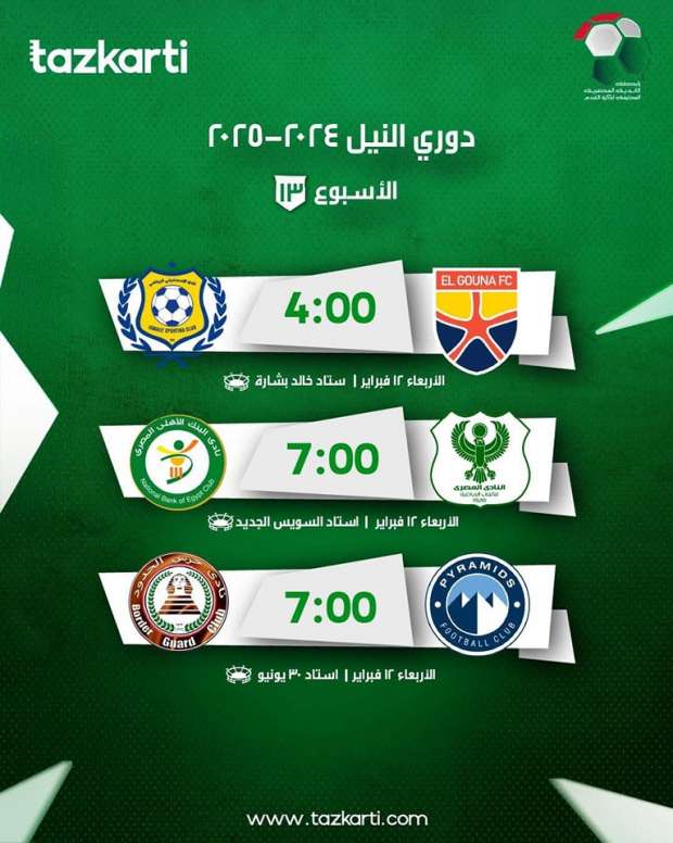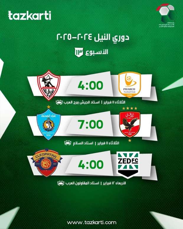 تذكرتي تعلن فتح باب حجز تذاكر مباريات الجولة 13 من دوري NILE