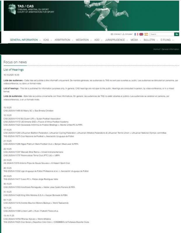 وأصدرت المحكمة الرياضية الدولية «كاس» بيانا رسميا كشفت تفاصيل القضايا المنظورة أمامها حتى حتى 14 نوفمبر المقبل، مبينة عدم النظر في قضية بيراميدز للمطالبة بمنحه لقب الدوري المصري هذا الموسم وسحبه من النادي الأهلي، خلال هذه الفترة.