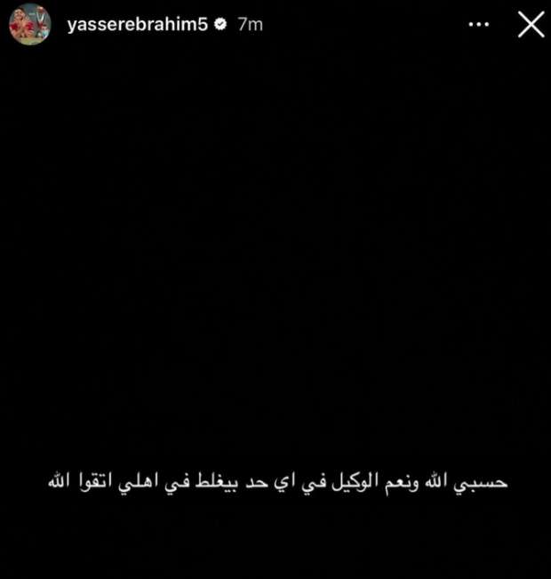 وكتب ياسر إبراهيم عبر حسابه الشخصي على منصة «إنستجرام» قائلا: «حسبي الله ونعم الوكيل في أي حد بيغلط في أهلي».