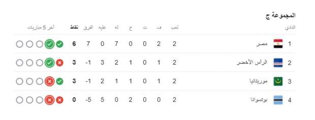 جدول ترتيب مجموعة مصر في تصفيات أفريقيا