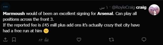 وترى جماهير آرسنال أن النادي فرط في صفقة مميزة، وهي ضم عمر مرموش، والتي تفيد الفريق، في ظل رفض النادي دفع مقابل مادي مناسب، مشيرين إلى أنها إدارة سيئة ولا ترغب في دفع أموال لجلب صفقات.