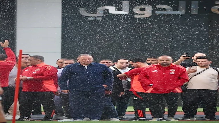 وحرص السويسري مارسيل كولر المدير الفني للأهلي، على عقد جلسة مع اللاعبين قبل انطلاق المران الجماعي.