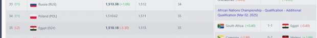 وكان منتخب مصر يملك 1513.48 نقطة في تصنيف فيفا الأخير والصادر في 19 ديسمبر 2024، وتم فقد 3.30 نقطة بعد التعادل والهزيمة من منتخب جنوب أفريقيا للمحليين، وبالتالي أصبح رصيد المنتخب الوطني، تحت قيادة حسام حسن، 1510.18 نقطة قبل ساعات على مواجهة إثيوبيا مساء الغد.