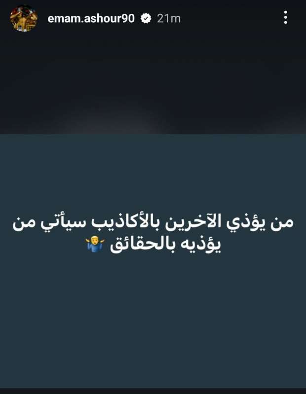 وعلق «عاشور» عبر حسابه الرسمي على موقع الصور الشهير «إنستجرام»: «من يؤذي الآخرين بالأكاذيب سيأتي من يؤذيه بالحقائق».