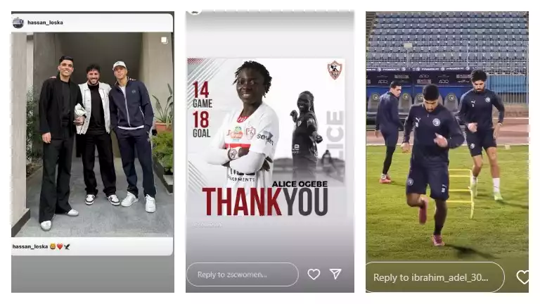 وشارك محمود جنش حارس مرمى مودرن سبورت متابعيه، صورته مع مؤمن زكريا لاعب الأهلي والزمالك السابق، فيما نشر إبراهيم عادل صورته من تدريبات بيراميدز.