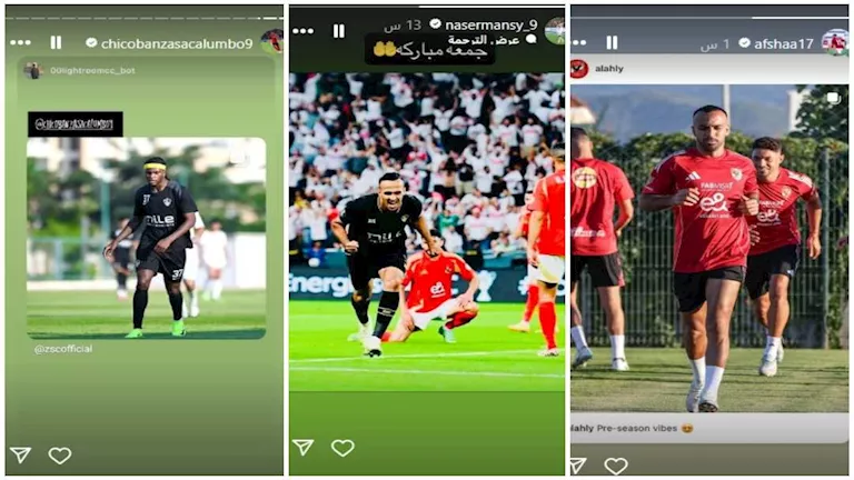 وشارك لاعب الزمالك ناصر منسي جماهيره صورة من احتفاله بهدفه في مرمى الأهلي بالسوبر الأفريقي مدونًا:”جمعة مباركة”، فيما شارك الأنجولي شيكوبانزا متابعيه ظهوره الأول مع الزمالك في ودية رع.