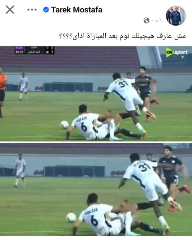 ونشر طارق مصطفى مدرب البنك الأهلي عبر حسابه على موقع التواصل الاجتماعي فيس بوك:« مش عارف هيجيلك نوم بعد المباراة ازاي».