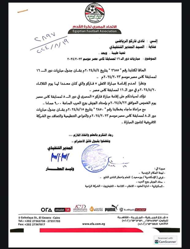 وأرسل الاتحاد المصري لكرة القدم خطابًا رسميًا لنادي فاركو يبلغه خلاله بأنه تم إلغاء مباراة الفريق أمام الأهلي، والتي كانت مقررة غدًا باستاد القاهرة الدولي، ومن ثمّ تأهل الفريق للدور ربع النهائي.