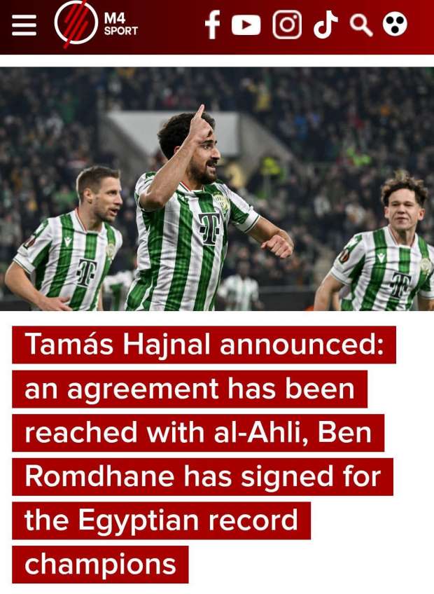 أعلن توماس هاجنال المدير الرياضي لنادي فرينكفاروزي المجري، عن انتقال التونسي محمد علي بن رمضان إلى صفوف النادي الأهلي خلال الفترة الحالية، وذلك لتدعيم وسط ملعب الفريق خلال الفترة المقبلة، بناءاً على رغبة من جانب لجنة الكرة بالنادي.