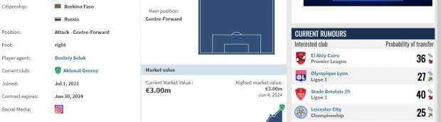 وأكد الموقع العالمي بأن نسبة انتقال محمد كوناتيه مهاجم المنتخب البوركيني للأهلي أصبحت 36% بعدما كانت 30% في السابق ويتنافس على ضم اللاعب أولمبيك ليون وستاندرلياج الفرنسيان وليستر سيتي الإنجليزي.