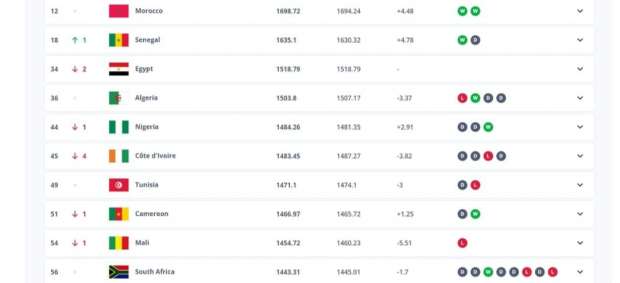 وواصل منتخب المغرب احتلاله المركز الـ 12 عالميًا، فيما تقدم منتخب السنغال مركزًا واحدًا ليأتي في الترتيب الثامن عشر على المستوى العالمي.