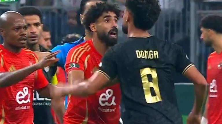 ودخل الثنائي إمام عاشور لاعب النادي الأهلي، في مشادة كلامية قوية مع لاعب نادي الزمالك نبيل عماد دونجا، مما أدى إلى تدخل لاعبي الفريقين لتهدئة الأجواء.
