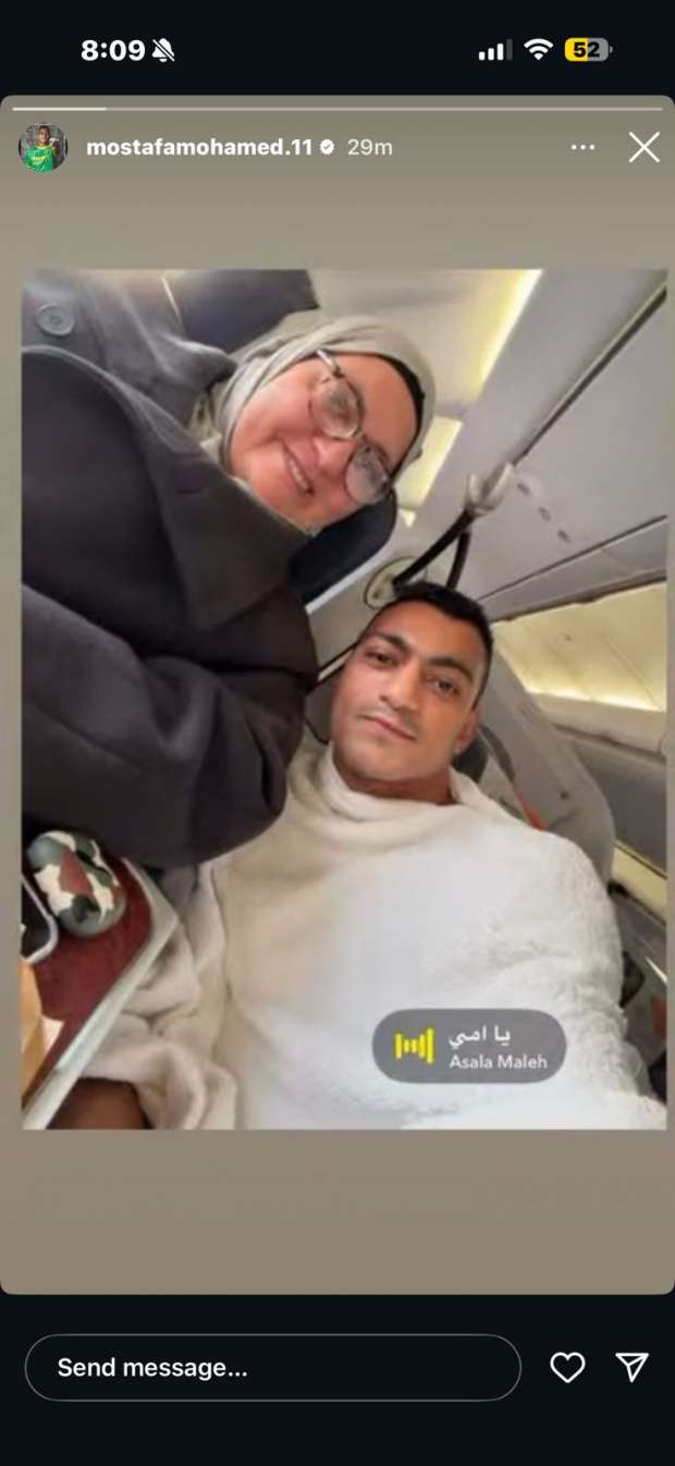 ونشر مصطفى محمد، عبر حسابه الرسمي على «إنستجرام»، صورة له برفقة والدته خلال السفر لأداء مناسك العمرة، قبل الانضمام لمعسكر منتخب مصر، اليوم.