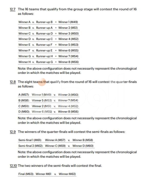 وكشفت المادة 12 الخاصة بجدول المسابقة حتى المباراة النهائية عن إلغاء مباراة تحديد المركز الثالث من البطولة بشكل نهائي ولعب مباراة النهائي مباشرة.