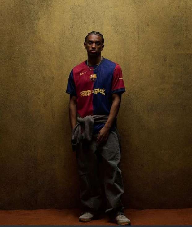 شعار خاص لمغني الراب الأمريكي على قميص برشلونة