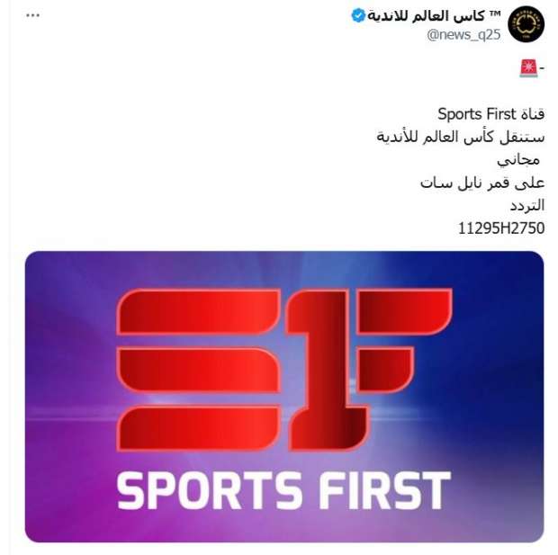 وتعد هذه الخطوة، التي قامت بها قناة Sports First، من أجل جذب جماهير كرة القدم في الوطن العربي والشارع الكروي المصري لمتابعة أحداث مونديال الأندية من خلالها، لاسيما أن هذه البطولة تحظى بمتابعة جماهيرية ضخمة.
